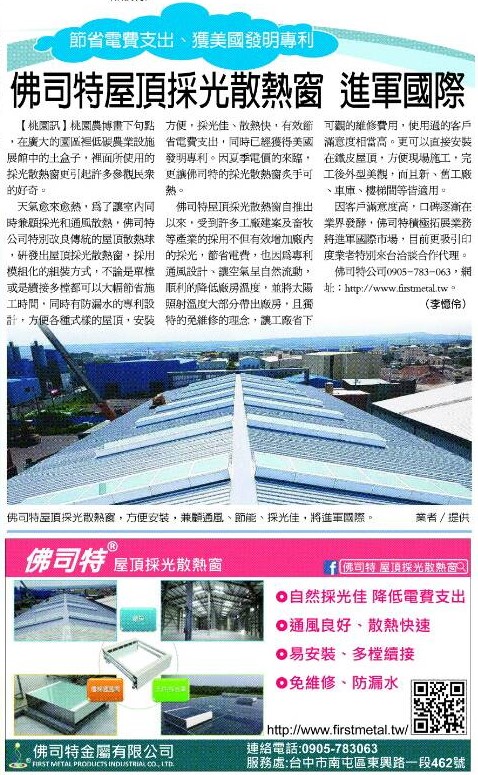 天氣愈來愈熱,為了讓室內同時兼顧採光和通風散熱,佛司特公司特別改良傳統的屋頂散熱球,研發出屋頂採光散熱窗,採用模組化的組裝方式,不論是單樘或是續接多樘都可以大幅節省施工時間,同時有防漏水的專利設計,方便各種式樣的屋頂,安裝方便,採光佳、散熱快,有效節省電費支出,同時已經獲得美國發明專利。因夏季電價的來臨,更讓佛司特的採光散熱窗炙手可熱。